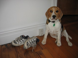 Jetzt koennte man denken, dass Billy wohl im Inneren eine Frau sein muss, aber nein, er sammelt die Schuhe nicht, sondern er zerfetzt sie regelmaessig, egal wem sie gehoeren. Suzie hat dabei am meisten darunter zu leiden. Bisher stehen sechs Paar von Suzies Schuhen auf Billys Liste. Am lustigsten fand ich die Story, als Billy Schuhe, die Suzie gerade ein paar mal getragen hatte wieder einmal zerbissen hatte und Suzie die daraufhin neu gekauften Schuhe nicht ein einziges mal anziehen konnte, als die neuen Schuhe das gleiche Schicksal ereilte... Aber nicht nur Schuhe haben es ihm angetan, er beschaeftigt sich eigentlich mit allem, was nicht niet- und nagelfest ist. So wurde ich als erstes gleich darauf hingewiesen, dass ich alles vor Billy in Sicherheit bringen muss, was ich dann in der Woche, in der ich hier blieb, gluecklicherweise auch geschafft habe. Und das war garnicht so einfach...